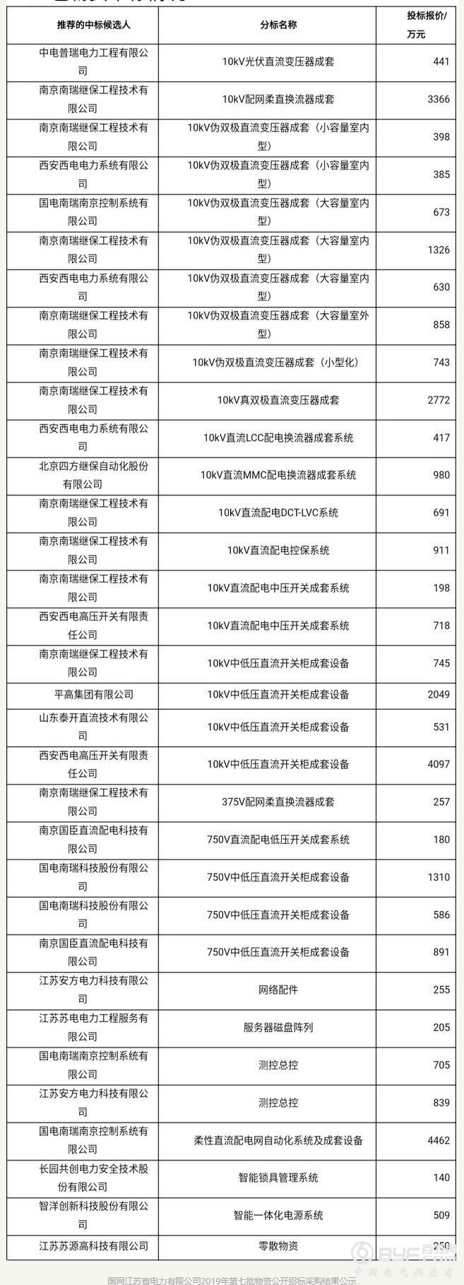国网江苏省电力有限公司2019年第七批物资公开招标采购(招标编号:GWJSZB1901XZ)推荐的中标候选人于2019年12月11日公示。