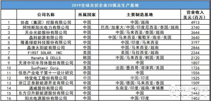 2019全球光伏企业20强及生产基地