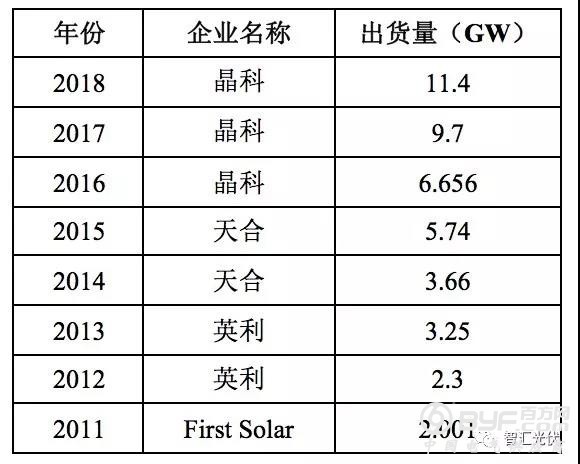 随着行业的发展,当老大的要求越来越高。下表是近8年出货量第一的企业当年出货量情况。可以看出,全球第一的门槛,从2011年的2GW一直提升到2018年的11.4GW。