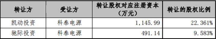 最终,2019年12月15日,科泰电源发布业绩补偿公告称,凯动投资和驰际投资拟以无偿转让部分已实缴出资的精虹科技股权的方式对公司进行补偿,即凯动投资、驰际投资拟分别无偿转让精虹科技22.36%、9.58%的股权给科泰电源。