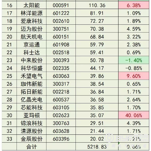 第二次修改后光伏企业名单,共包含33家光伏企业,其中上海证券交易所15家,深圳证券交易所10家,深交所创业板8家,不包含港 交所和美股上市的光伏企业。33家光伏企业中包含电站投资企业、逆变器生产企业、组件生产企业、硅片企业、硅料企业、设备生产企业、玻璃及背板生产企业等,具有较好的代表性。