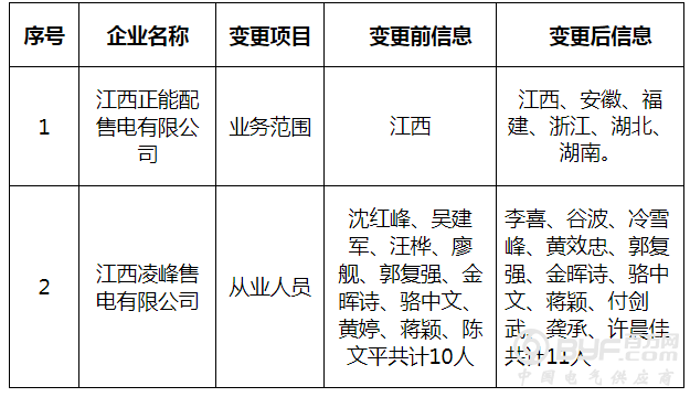 近日江西电力交易中心公示江西正能配售电有限公司、江西凌峰售电有限公司的变更信息,详情如下: