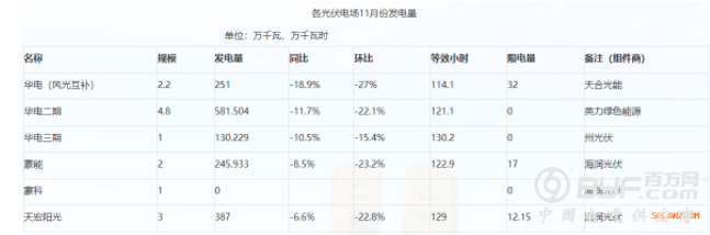 一、全市光伏电场11月份发电量