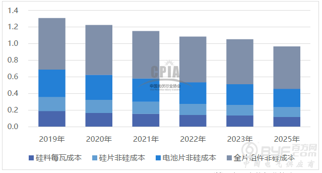 2019年,随着各环节技术进步与成本控制,单晶PERC组件成本降至约1.31元/W,较2018年下降超过9%;黑硅多晶组件、黑硅多晶PERC组件成本较单晶PERC组件低6-7分/W。随着电池片转换效率、每公斤硅片出片量及生产设备生产能力的进一步提升,组件成本有望持续降低。