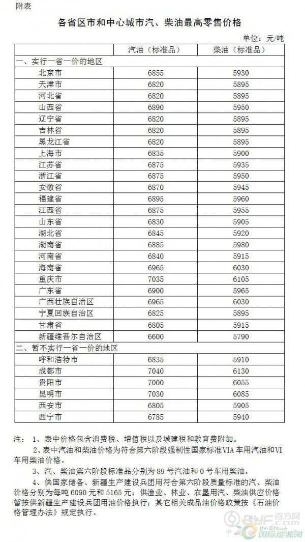 附:各省区市和中心城市汽、柴油最高零售价格