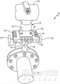 过程流体压力变送器通常被直接安装到过程流体流量元件之上,该元件例如是孔板或平均皮托管,例如可从Chanhassen ,MN的Emerson Process Management获得的初级流量元件。初级流量元件被布置在过程流体流( 例如蒸汽)内。在高温应用中,过程流体的温度可能使过程流体压力变送器的填充流体变得过热并且损坏过程流体压力变送器的传感器。