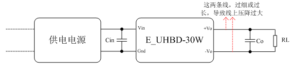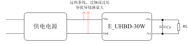 3、模块在使用时,供电电源与模块之间导线过长,会使得导线的电感量大。开关电源模块的开关特性,使得输入端有电流纹波,这样容易引起导线和模块之间的振荡。长时间工作模块发热严重,容易损坏。