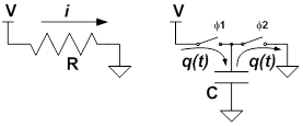电荷转移指的是电压节点之间的电荷受控移动。图3 显示了电阻器和开关电容中的电荷转移。