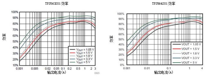 图2:TPS563201和TPS564201效率曲线