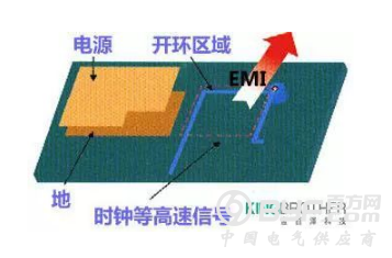 外部的传输线或者PCB的印制线存在RF电流(射频电流),电流流到负载后返回源头,这样就形成了闭合电流环路,也就产生磁场,从而也就产生辐射电场。因为PCB印制线与电流路径存在一定的物理距离,磁通耦合不能达到100%,未被耦合的RF电流就是引起电磁干扰的主要原因。