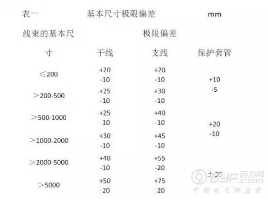 以上线束的基本尺寸极限偏差应符合表一规定: