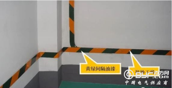 4、于接地干线外表面刷黄绿相间油漆标识。