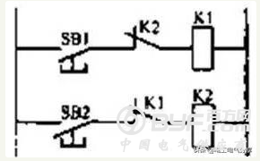 “联锁”电路实质上是两个禁止电路的组合。K1动作就禁止了K2的得电,K2动作就禁止了K1的得电。