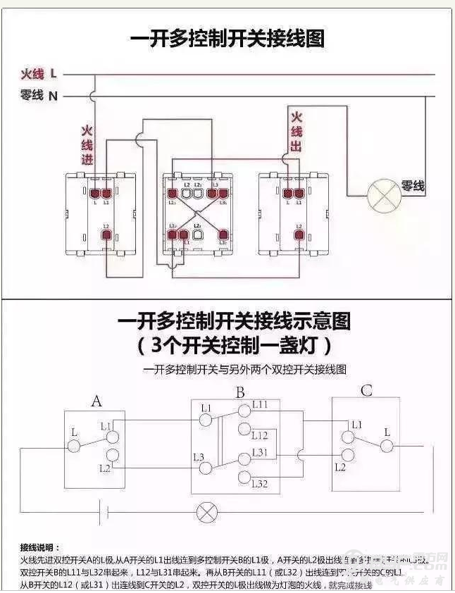 最后附上最全的开关接线图