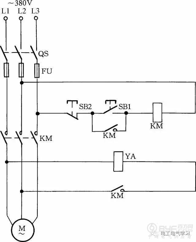 线路中YA为制动电磁铁,在通电后,制动解除;在断电后,YA立即制动。