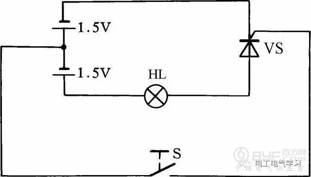利用图30所示的简便方法可检查晶闸管的好坏。当开关S断开时灯泡不亮,而当开关S闭合后灯泡发亮,说明晶闸管能导通工作,否则晶闸管就是坏的。此方法对一般晶闸管均能测试,灯泡选用1.5V小电珠灯泡。