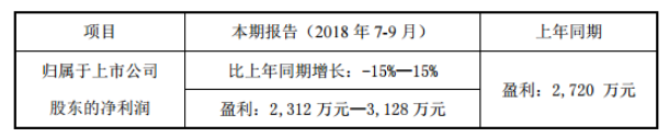 其中,第三季度实现归属于上市公司股东的净利润2,312万元至3,128万元,与去年同期2,720万元相比变动-15%至15%。