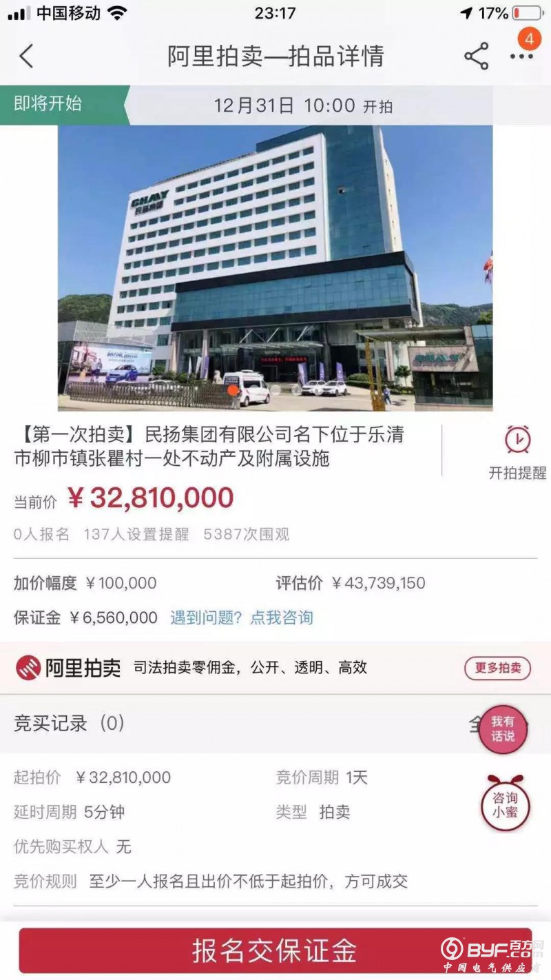 近日,一张有图有文的照片引起了不少浙江朋友的关注。由于资金暂时出现短期流动性困难,民扬集团有限公司在阿里发布拍卖公告:(司法拍卖零佣金,公开,透明,高效)