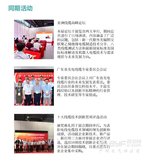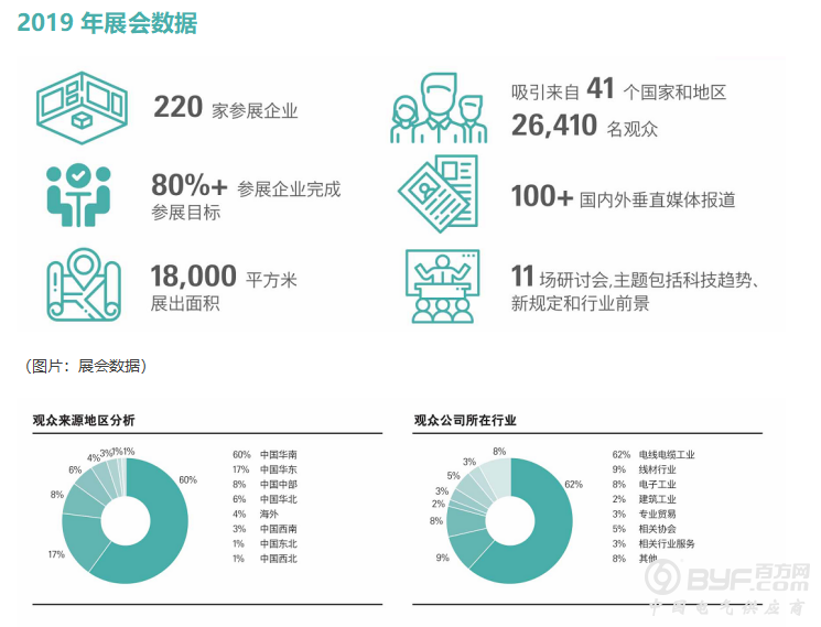 广州国际线缆展立足华南产业,在海内外电线电缆市场占有举足轻重的地位。本届展会预计将迎来250家参展企业及30,000名专业买家,协同亚洲电力电工暨智能电网展览会,为蓬勃发展中的线缆和电能市场再添动力。