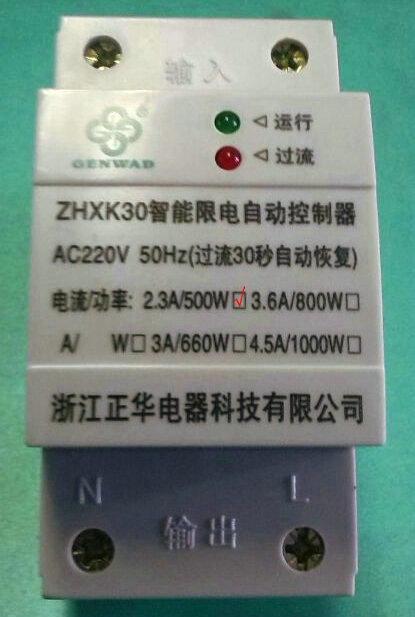 ZHXK30智能限电自动控制器,(电子限荷自动控制器)适用于交流50Hz,工作电压24V-220V,电流0.5-20A,功率110W-4400W,可用于宾馆、学校工厂宿舍和建筑工地民用房以及规定的使用功率场所的用电自动控制。主要是限制非法使用阻性负载功率电热设备,(如电炉、热得快)等违章电器投入使用,该产品在节约用电、安全用电、特别是限制线路老化与杜绝使用大功率违章电器而造成过电流发热引起火灾是辅助消除安全隐患的作用。