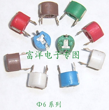 本公司长期供应南韩进口环保型Ф6 塑封可调电容:直径6MM、脚距6MM、标称容量范围(3p-120P:分别是:黑色3P,蓝色5P、7P,白色10P,红色20P,绿色30P,黄色40P,棕色50-120P);Ф5陶瓷可调电容(5-90P), Ф7陶瓷可调电容(5-120P),设计坚固可抵强烈震动.Ф3贴片可调电容系列.松下4mm贴片可调电容系列。 本品广泛应用于电视机、录像机、VCD机、DVD机、电话机、办公自动化设备,各种摇控器和信息通讯设备等领域。全面执行ROHS环保标准,欢迎来电查询!本公司还代理韩国STD,叁佑,SEHWA,松下,日光,三泰等可调电容,松下可调电阻,国产蓝白色可调电阻.还代理成都国产,美国BURANS系列,精密龙系列的电位器.