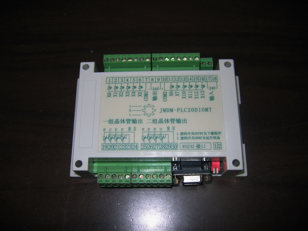 8)接口:1 路标准的RS232 串行通信接口(抗15KV 静电冲击),可直接与电脑或文本显示器等外设通信;可直接通过 RS232 接口下载程序,无需烧录器,方便程序修改、升级;