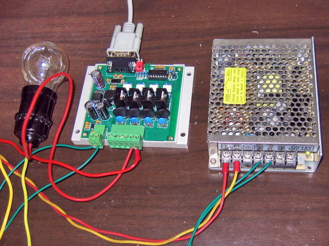 2、通过电脑串口控制继电器(或晶体管)的开和关,来实现对各种开关量信号的控制。