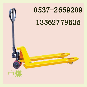手动托盘搬运车在使用时将其承载的货叉插入托盘孔内,由能力驱动液压系统来实现托盘货物的起升和下降,并由人力拉动完成搬运作业。它是托盘运输工具中最简便、最有效、最常见的装卸、搬运工具 人体工学设计的塑胶手柄,舒适省力。独特的整体冲压成型甲壳虫型货叉,不仅强度比普通货叉提高25%,而且外形更优美手柄拨叉部装有橡胶垫,大大延长使用寿命。