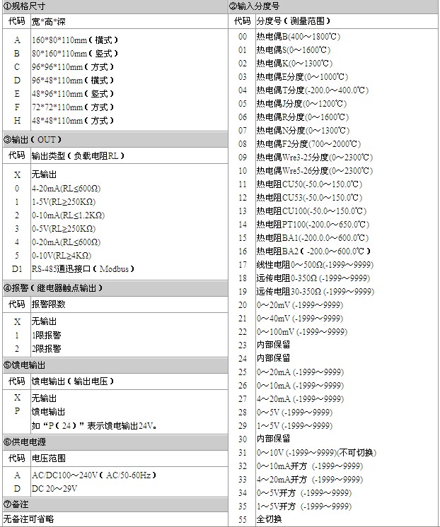2、选型时请根据接线图来选择功能,由于尺寸小的仪表接线端子少带不了全功能,有的功能在同组端子上只能选择其中一种功能。