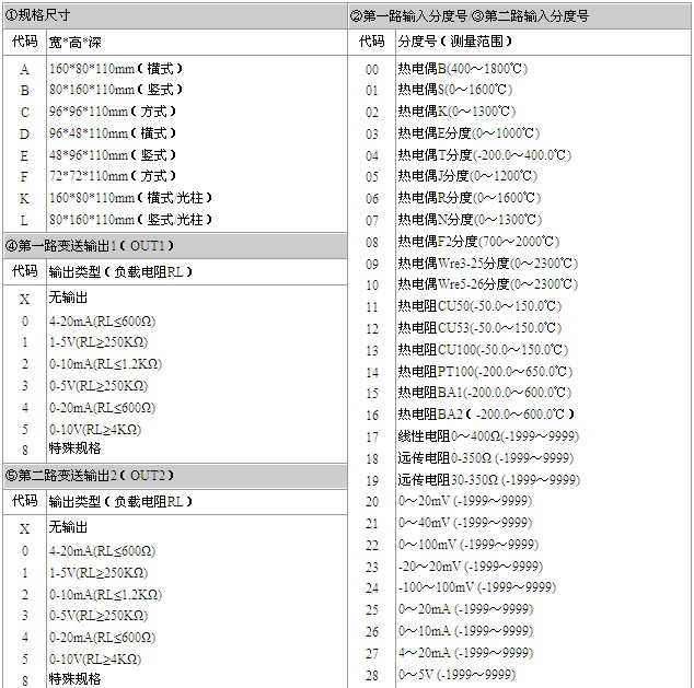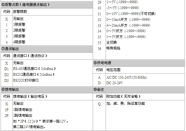 备注: 1、选型时请根据接线图来选择功能,由于尺寸小的仪表接线端子少带不了全功能,有的功能在同组端子上只能选择其中一种功能。