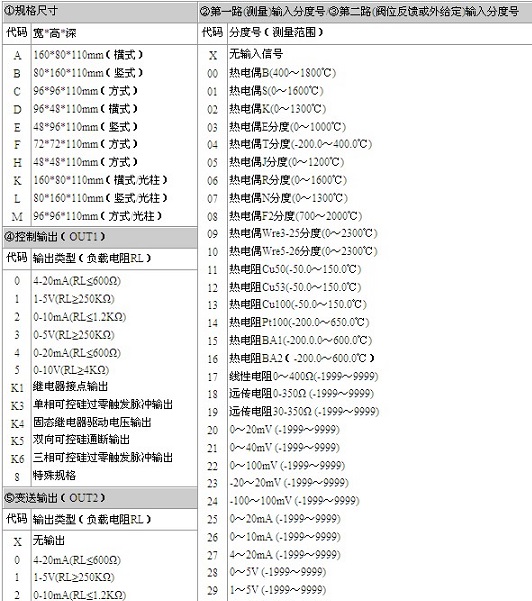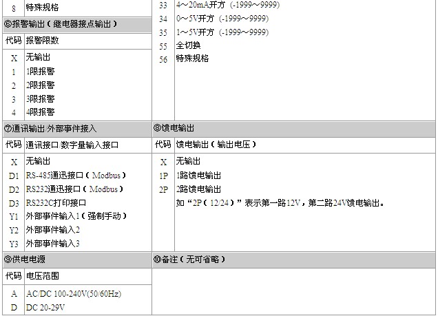 2、规格尺寸为F、H型的仪表不带RS232C打印接口,规格尺寸为H型的仪表只能做单路控制。