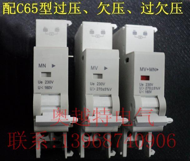 配C65小型断路器附件: MX+OF分励+辅助、MX分励脱扣、OF辅助触头、SD报警触头、MN(C65Q)欠压脱扣器、MV(C65G)过压脱扣器、MV+MN(C65GQ)过欠压脱扣器。