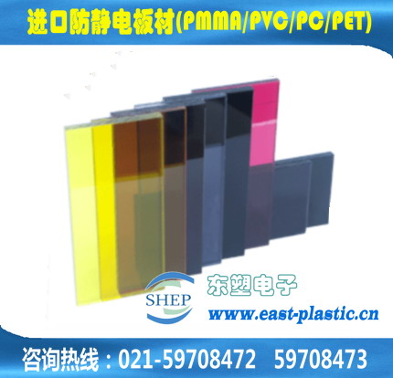 上海东塑经营防静电板基材 工程塑料:有机玻璃(PMMA),PVC,PC,POM, MC等工程塑料,在完美地保留基材固有的物理特性的基础上,使其同时具有优秀的防静电功能,以满足高科技时代产业界的特殊需要。