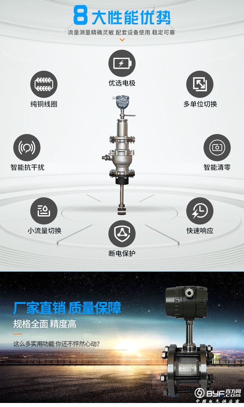 输出与流量成正比的脉冲信号,无零点漂移,精度高,方便与计算机联网;