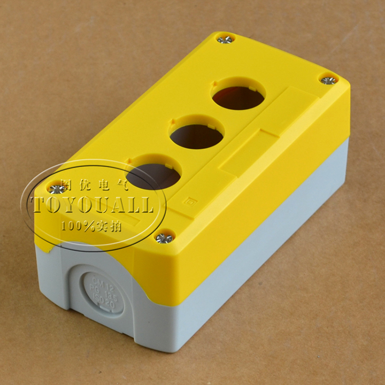 特价22直径四孔按钮盒防水开关盒4孔控制盒黄色塑料按钮盒