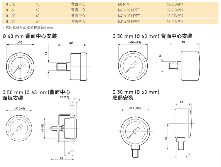 三种表面刻度: bar, psi Mpa ( 兆帕 )