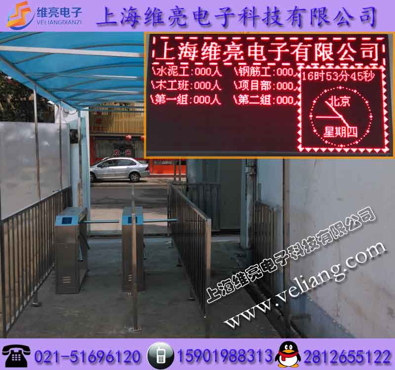 LED屏联动三辊闸,实现人员刷卡或指纹LED屏上可实时显示每个人员及部门进出的人员数,并显示此次进出人员的姓名或属于哪个部门的人员。 LED三辊闸的组成:三辊闸+LED显示屏+同步卡+LED屏联动闸机软件。很多工地施工人员的施工安全,工程建材被盗,拖欠民工工资、非工地人员随便出入等系列事情的发生,工地的监控、考勤工作越来越重要。针对以上各种工地的门禁安全管理问题,上海维亮最新推出一套完全适合工地工程人员实时监控管理的系统-LED屏联动三辊闸(摆闸,翼闸,全高转闸)门禁系统。