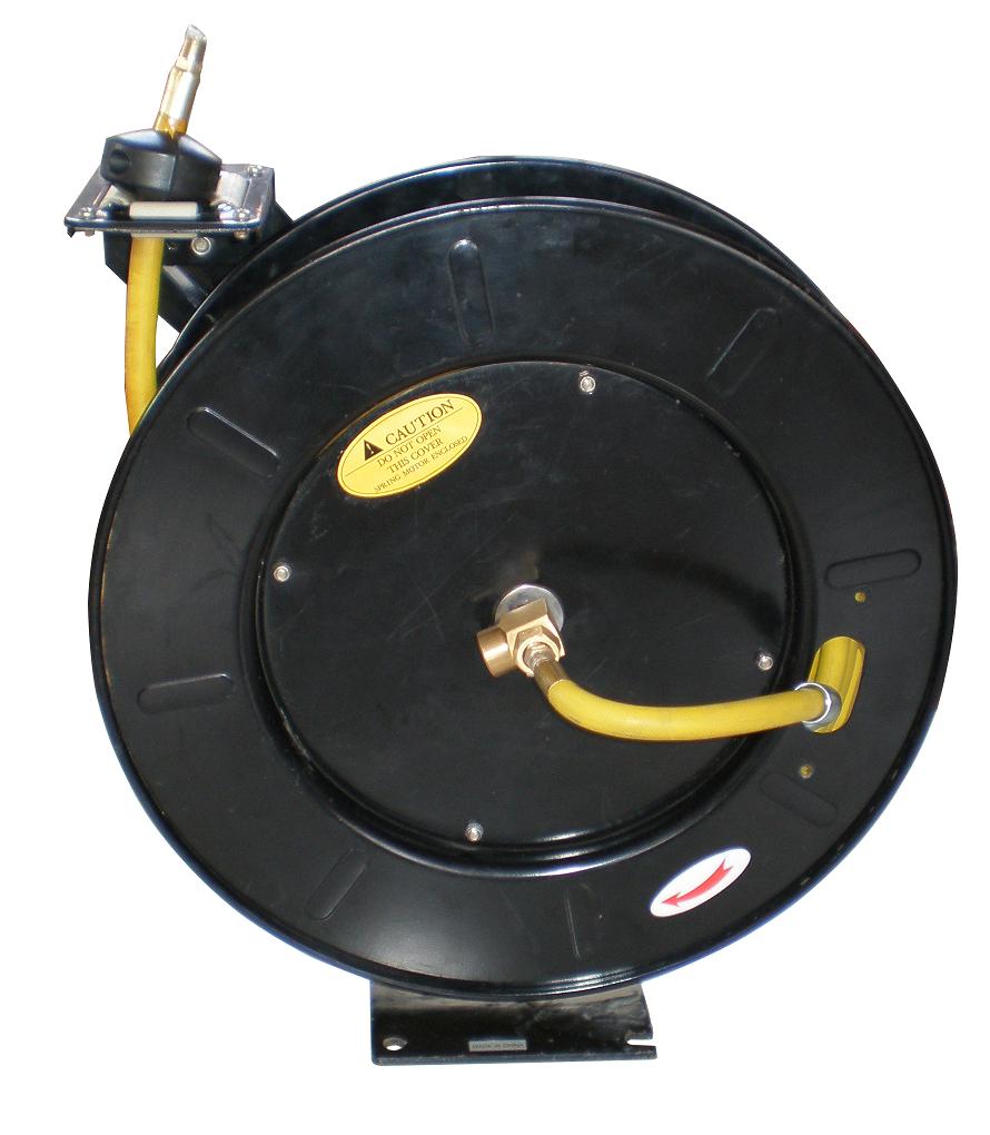 5. 全钢活结外罩,自动回绕;卷管器由机架、安装架、软管等组成,软管可以自由伸缩,用于快速加注系统,适用水、空气、润滑油等低、中、高压液体的输送,最长输送距离达15米,压力可达250PSI。