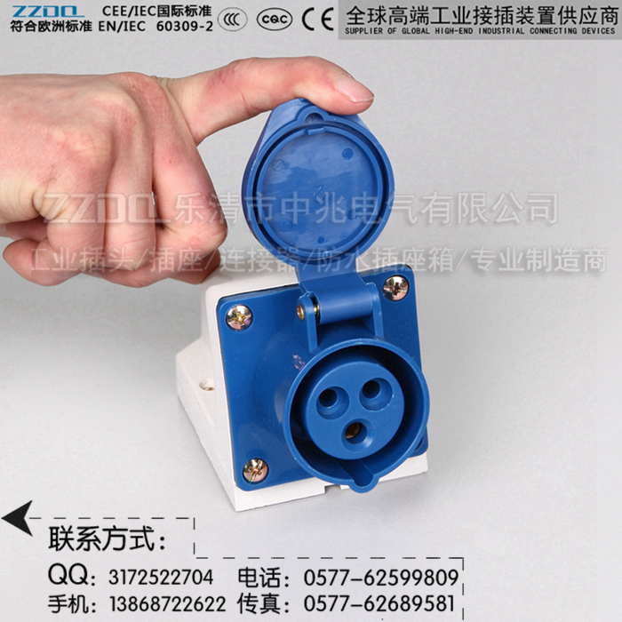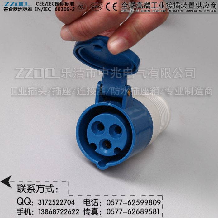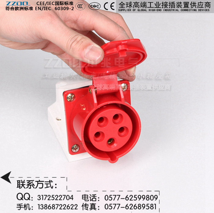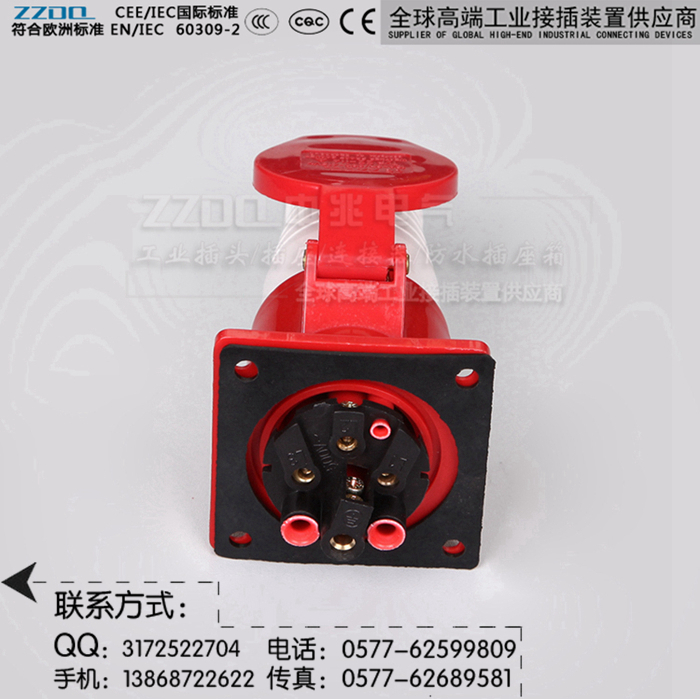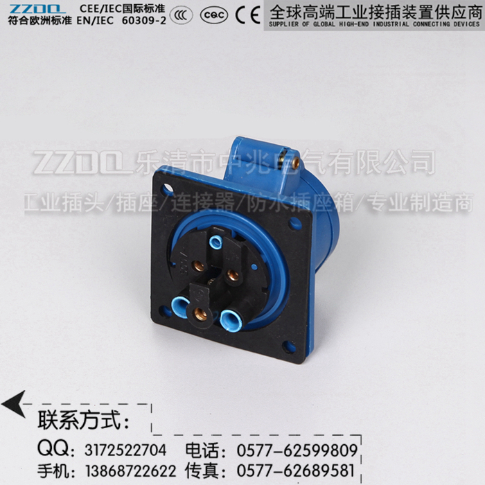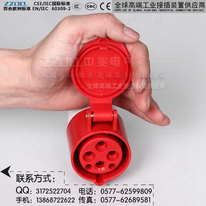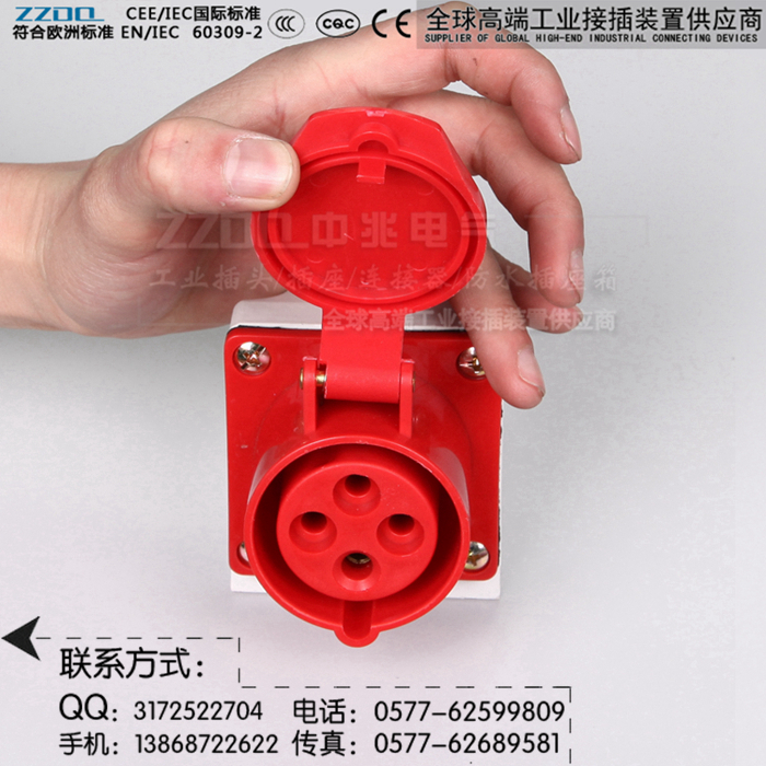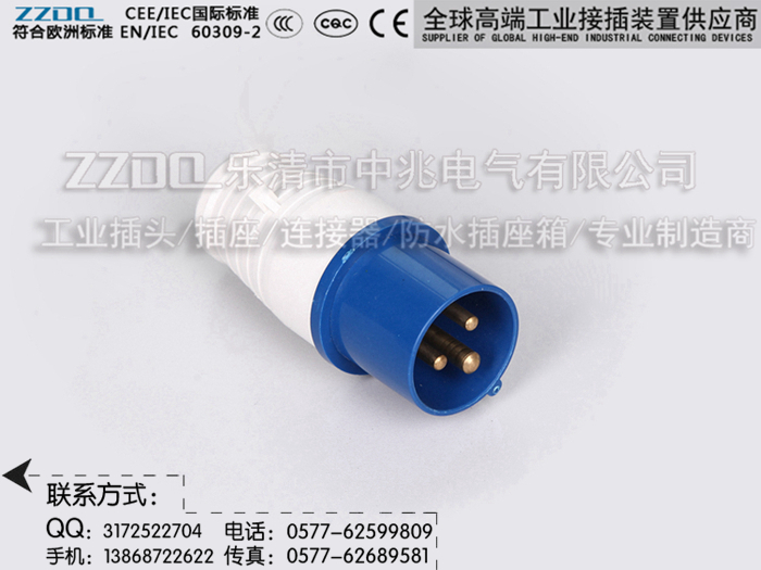 中兆电气(ZZDQ)专业从事高端工业插头插座、防水插头插座,航空工业插头,防爆插头插座,连接器耦合器和组合式电源箱的批发和零售。全部符合国际标准 IEC603309-1、IEC603309-2,同时也符合GB/T 11918-2001、GB/T 11919-2001的要求。具备CCC CE认证,防水、防尘、防潮、防腐、防爆和阻燃耐高温,抗老化,韧性大,抗冲击性好,光洁度高等优点。产品广泛应用于各种用电场所。产品规格有3芯/4芯/5芯,IP44 IP67(15A/25A/32A/60A/63A/100A/125A/150A/200A/300A等规格)欢迎选购。