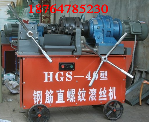 HGS-40型钢筋直螺纹滚压机。主要用于建筑工程带肋钢滚轧直螺纹丝头,是实现钢筋连接的关键设备。可加工直径16-40mm的HRB335和HRB400级带肋钢筋。