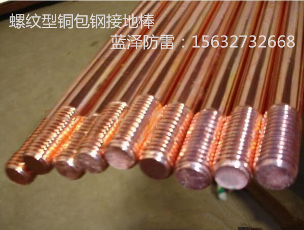 蓝泽公司生产的镀铜接地棒是采用特殊工艺将电解铜均匀覆盖到低碳钢芯上,使铜与钢芯完全分子结合.它具有铜层(0.25毫米以上、UL467, BS6651和BS7430标准),黏度好,不剥离(可扎制螺纹)等特点.它的优点是抗拉强度大(高达600牛顿/平方毫米),耐腐蚀性强(可保证使用寿命在50年上).