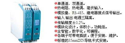 可以与单元组合仪表及DCS、PLC等系统配套使用,给予现场仪表信号隔离、信号转换、信号分配、信号处理等,从而提高工业生产过程自动控制系统 的抗干扰能力,保证系统的稳定性和可靠性。可带液晶显示,通过红外轻触按键切换显示不同通道的参数,显示实时测量值、理论输出值、单位及通道号。