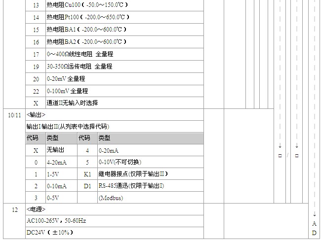 热电阻、热电偶、毫伏信号(订货时确定或配置编程器自行编程)