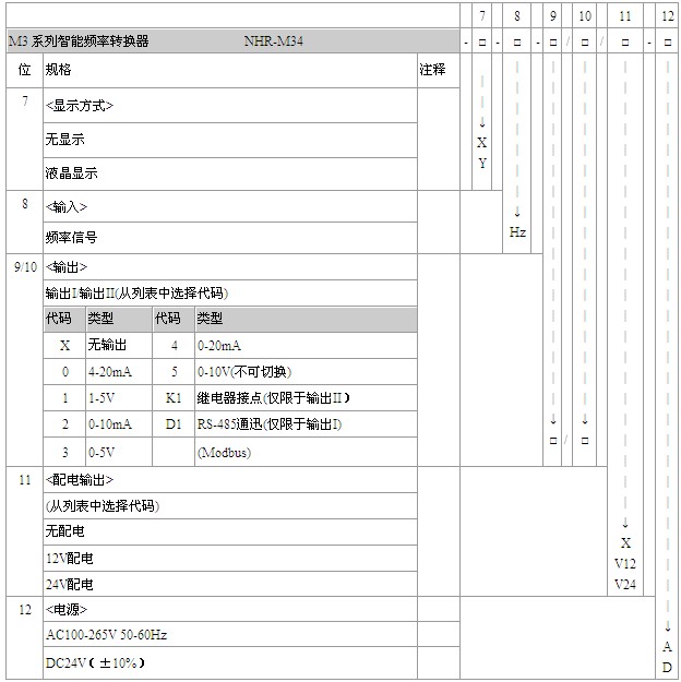 型号举例:NHR-M34-Y-HZ-0/0/V24-A(F/0~1000Hz)