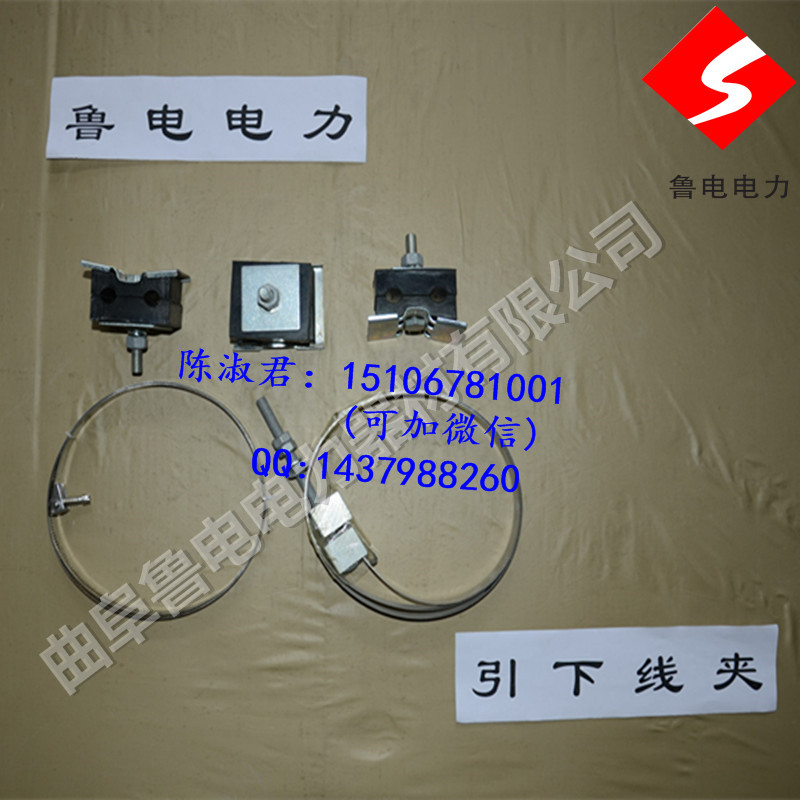 引下夹具又称引线线夹,引线金具.主要用于ADSS及OPGW光缆在杆塔上引线是的固定安装。如,在光缆接头杆(塔处,光缆从夹持金具引到接续保护和安装处的固定作用。光缆从杆塔上引下到地下管道,电缆沟、直埋,以及引下进入机房等处的固定。避免光缆在风力作用下与杆塔或其他物件摩擦而损坏光缆,以保护光缆的安全。