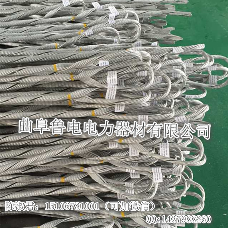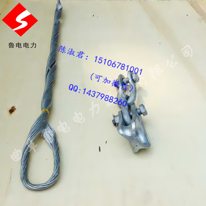 5) 耐腐蚀性好,选用优质材料。材质与导线完全一致,保证线夹具有较强的抗电化学腐蚀的能力。光缆金具预绞式耐张金具耐张线夹耐张串ADSS/OPGW电力光缆金具厂家批发。光缆,曲阜鲁电电力器材有限公司主要生产全介质自承式光缆(ADSS)和复合光缆(OPGW)配套的安装金具系列产品。主要有适合各种光缆缆径和不同架设档距需要的螺旋预绞式耐张线夹和悬垂线夹,以及与之配套使用的紧线夹具、引下线夹、螺旋减震器、防晕环、防震锤、接地线、光缆接头盒和与杆塔连接的紧固夹具。并与之全国知名光缆厂家形成长期的合作伙伴。我们一直致力于客户的满意ADSS耐张线夹用途:ADSS、预绞丝耐张线夹主要用于架空自承式ADSS光缆线路的固定、锚紧, 一般安装于终端塔、紧线耐张塔、转角塔等位置。 组成:预绞丝耐张线夹组件每套包括:内绞丝、外绞丝、拉环。用户可根据设计要求配置选购其它的连接件。特点:预绞丝耐张线夹对导线(光缆)的握力可达到导线(光缆)极限抗拉强度(R.T.S)的95%以上, 无应力集中及振动应力的影响