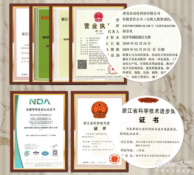 C65小型断路器精益生产线具体参数如下: u 生产线工作电源电压:380V±10%,50Hz±1Hz。 u 生产线可实现C65断路器生产的自动装配、自动喷码、自动穿铆钉、自动铆接、自动延时检测、自动循环冷却、自动瞬时检测、自动通断检测、自动耐高压检测、自动移印、自动包装、等工序的自动化生产。 u 生产线理论生产节拍:1秒/极;日产量约36000极/10小时。 u 瞬时电流精度:±2%;延时电流精度:±1%; u 生产线具有断电保存30天数据的功能,便于生产数据的管理。 u 气动元件德国FESTO公司品牌产品;电气控制系统:日本三菱公司品牌产品;传感器:日本OMRON公司品牌产品;直线导轨:台湾上银公司品牌产品;触摸屏采用:MCGS公司品牌产品。