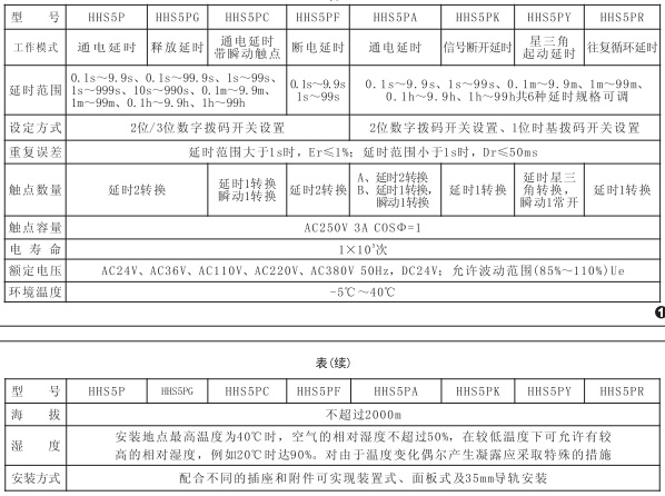 HHS5P系列数字式时间继电器(以下简称继电器)适用于交流50Hz、工作电压380V及以下或直流工作电压24V的控制电路中作延时元件,按预定的时间接通或分断电路。
