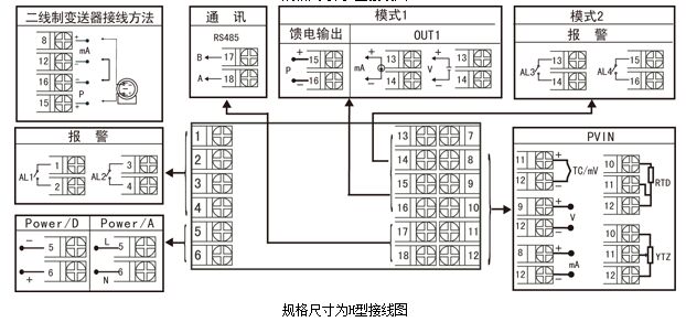 具备“上下限报警”、“延迟报警”、“断线报警”、“闪烁报警”等报警功能,带LED报警灯指示。
