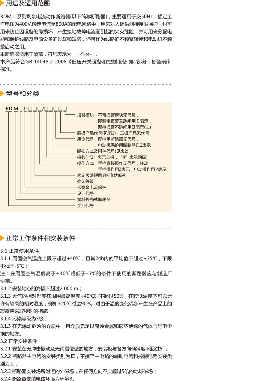 RDM1L系列剩余电流动作断路器